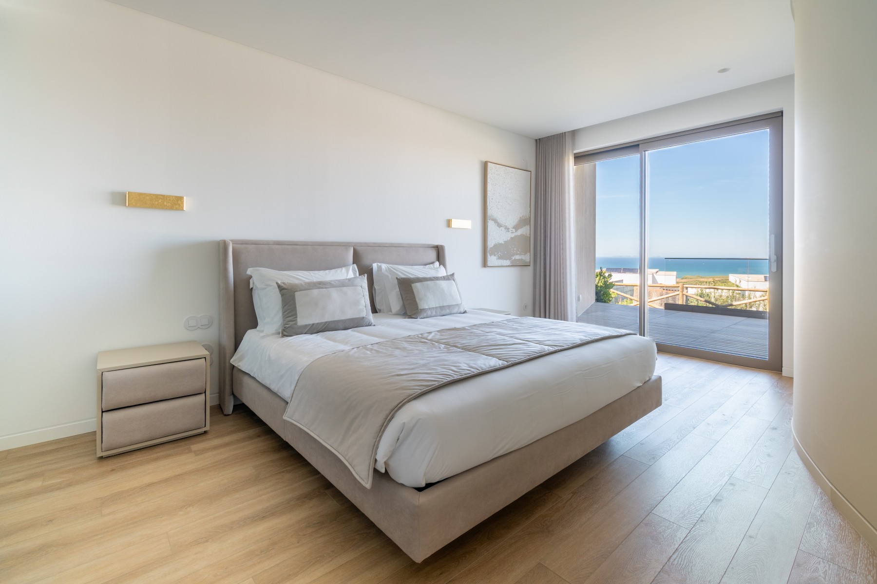 Os dois quartos, com camas grandes e confortáveis, estão muito bem decorados com as casas de banho em mármore (uma é suite) e armários embutidos. A divisão abre para um amplo terraço – perfeito para relaxar ao sol enquanto aprecia a vista do pôr do sol e refeições ao ar livre. Também dispõe de uma lavandaria com máquina de lavar e secar roupa. Está disponível um lugar de estacionamento coberto no piso inferior do bloco. O edifício dispõe de elevadores do estacionamento até aos apartamentos.