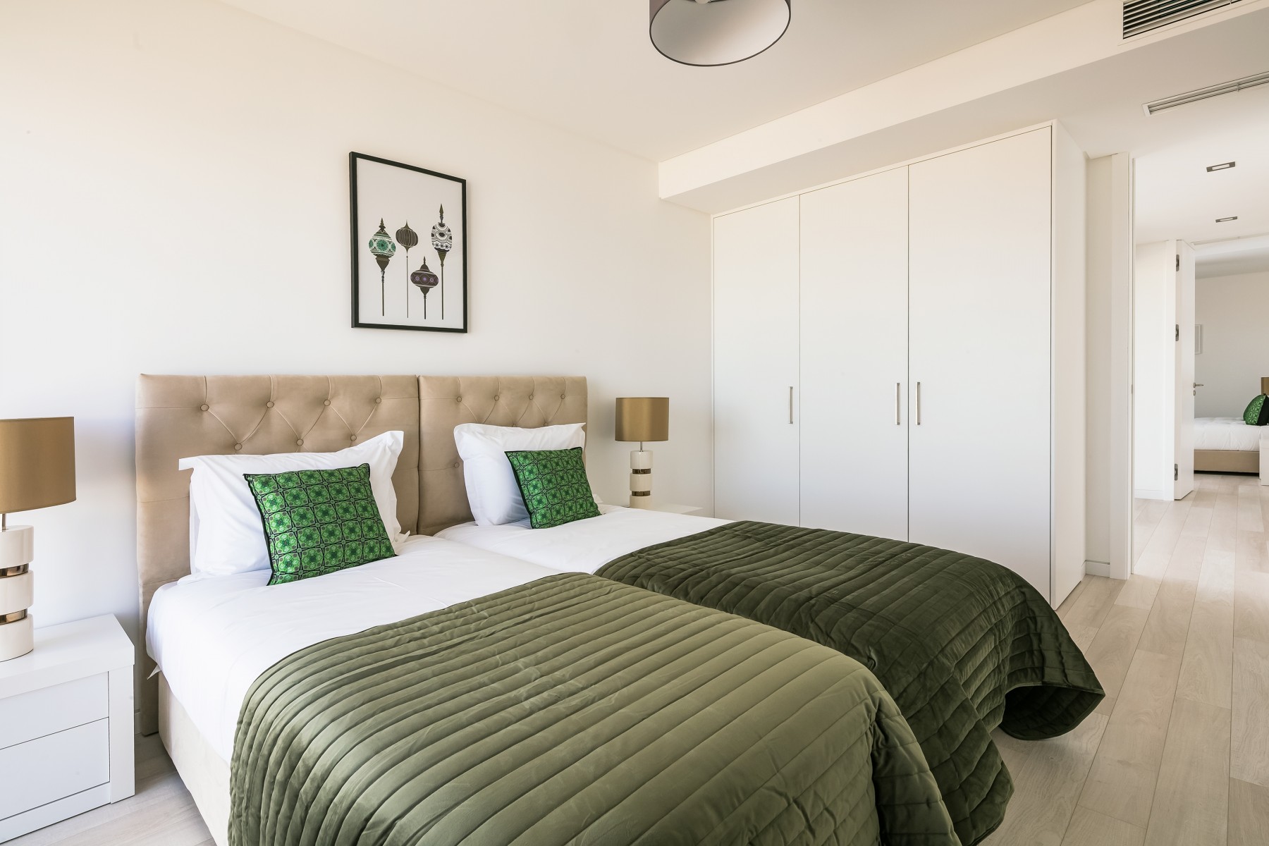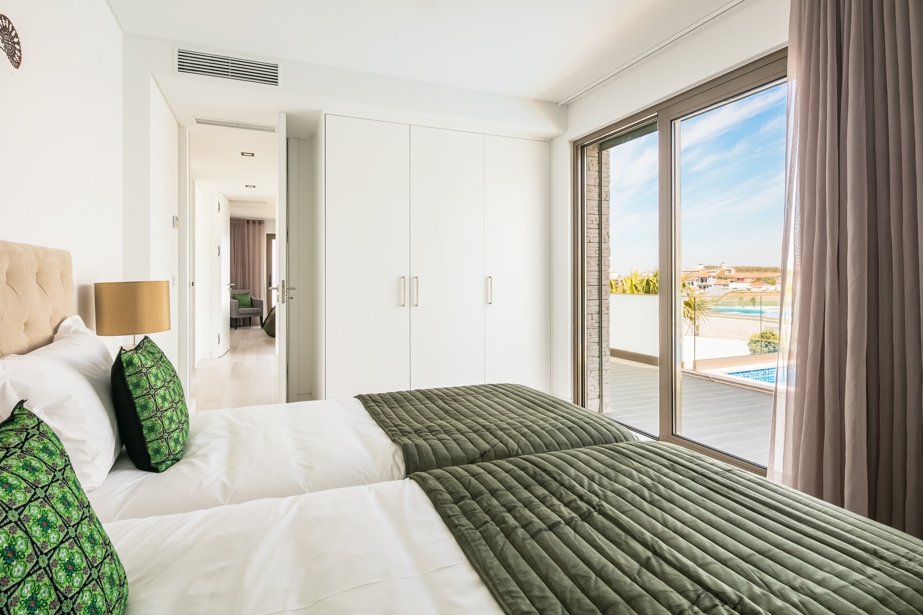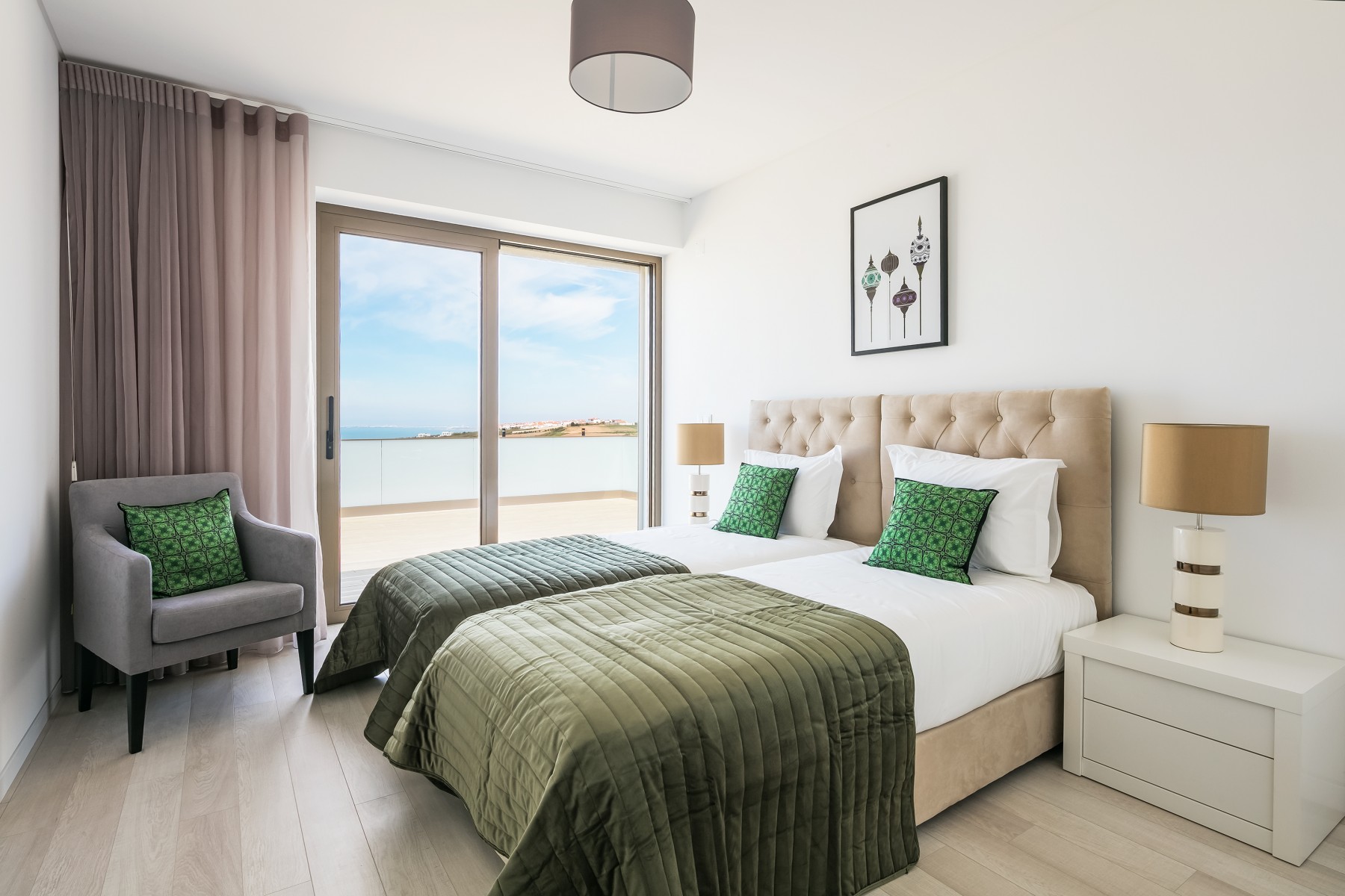 - 3 quartos: 1 duplo com cama super kingsize (1,80m x2m) | 2 x 2 camas individuais (0.90x2m) – acomoda 6